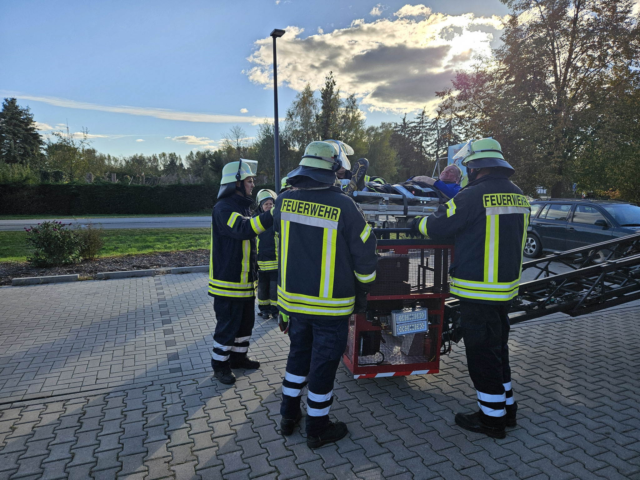 Da es sich um eine Übung handelte, wurden die verletzten Personen zum Teil als Puppen dargestellt, aber auch mit realen Personen simuliert. Zwei der Personen wurden über die Drehleiter aus dem zweiten Obergeschoss gerettet, andere mittels Schleifkorbtrage und Drehleiter aus einem Kellerfenster herausgeholt.